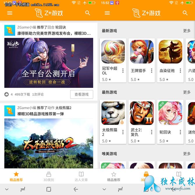 ▲可以上传自己拍摄的3D图片/视频 Z+游戏 而在游戏方面,酷比F2 3D版拥有 Z+游戏 平台,它是全球最专业的裸眼3D游戏渠道之一,其内置上千款3D游戏,包含《极无双》、《射雕英雄传3D》、《宝石研物语》、《黎明之光》以及天天系列等热门游戏可供选择。